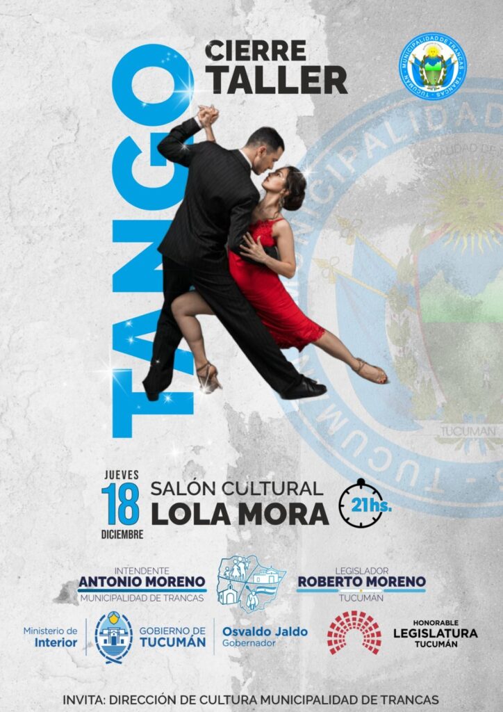 La Municipalidad de Trancas continúa llevando adelante los cierres de ciclo de las Escuelas de Capacitació, y en esta oportunidad será el turno del Taller Municipal de Tango, que tendrá su muestra final el jueves 18 de diciembre, a las 21 horas, en el Salón Cultural Lola Mora.