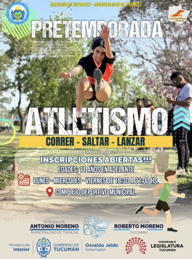 La Municipalidad de Trancas, a través de la Dirección de Deportes que conduce Fabrizio Adrián Ballespín, invita a jóvenes y vecinos a participar de la pretemporada de la Escuela Municipal de Atletismo, un espacio pensado para fortalecer hábitos saludables y valores que construyen comunidad.